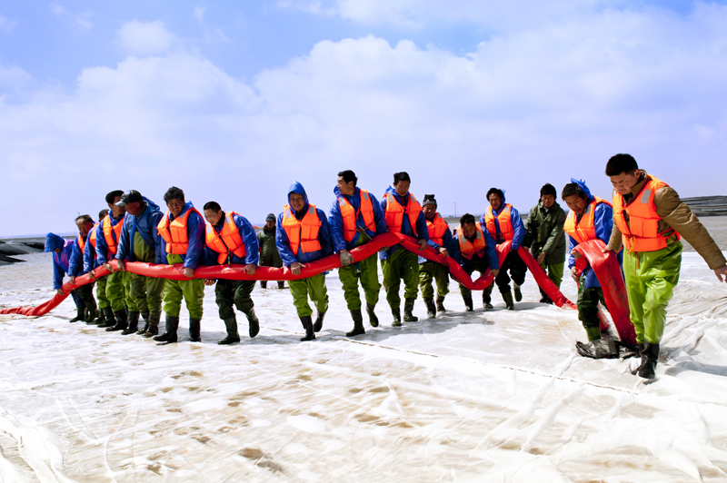 2004年5月,全國最大的工業用海項目——洋口港臨港工業區30平方公里海域使用權獲得國務院批準。根據規劃,洋口港臨港工業區分三期建設,先期建設的一、二期工業區已具備企業入駐條件。為滿足臨港工業的發展需要,2012年6月,縣委、縣政府決定啟動洋口港臨港工業區三期圍墾及配套工程。工程于2012年12月20日開工建設,計劃匡圍面積約11.7平方公里,圍堤總長度7.8km,吹填土方190萬立方米,工程投資1.16億元。在洋口港開發建設前線指揮部、洋口港經濟開發區、洋口港投資開發有限公司的科學謀劃、精心組織下,工程中標單位中海工程建設總局積極落實施工方案、抓好工程節點控制,克服了多次暴風寒潮對工程施工帶來的不利因素,確保了工程按時間節點穩步推進。從4月1日起,三期圍墾工程的三個龍口按計劃開始合龍,共有500多名施工人員、14艘船只參與施工,經過連續3個晝夜奮戰成功合龍。